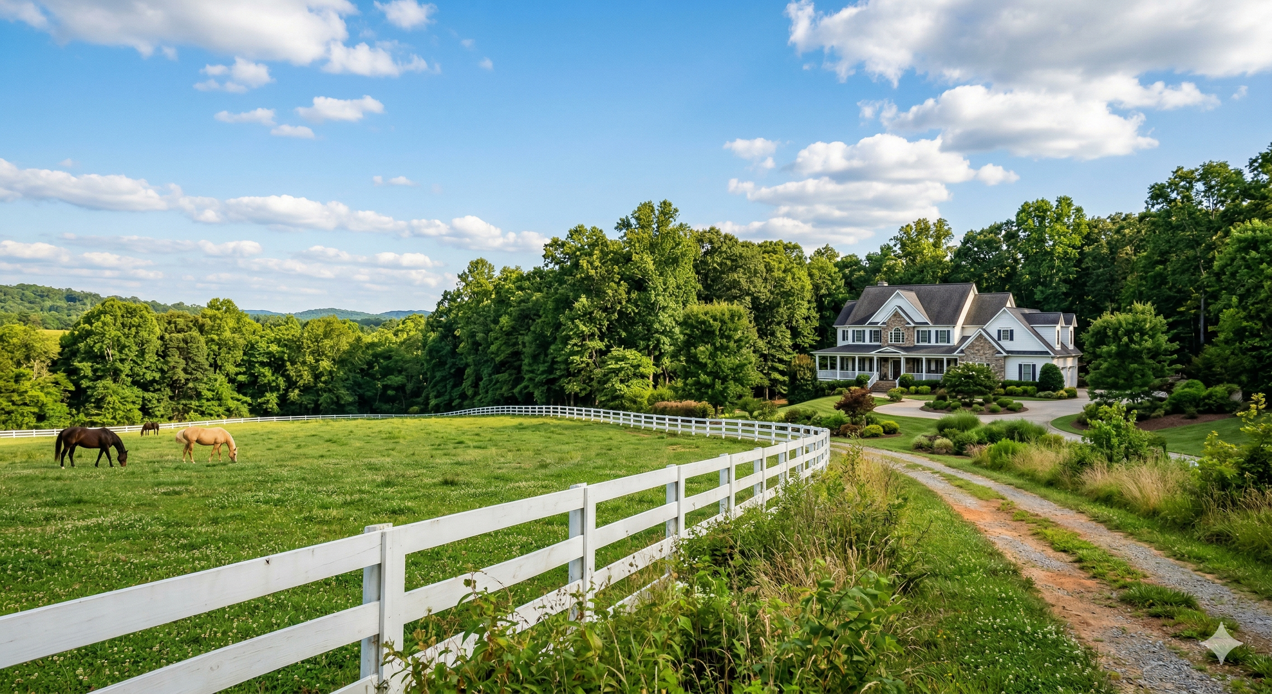 $1.4M–$3M+: Estate properties, renovation opportunities on larger parcels, and custom builds. The Birmingham Highway corridor and Hopewell Road area dominate this range. Multi-acre lots, equestrian facilities, and significant privacy.