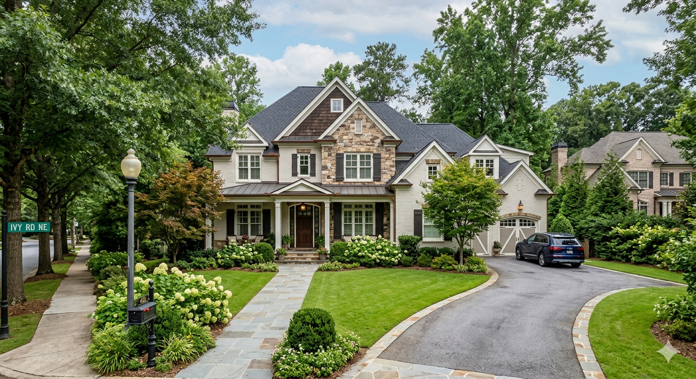 North Buckhead is not a historic neighborhood in the Buckhead Forest sense. Its housing stock is more varied — from 1950s and 1960s brick ranches and bungalows in the residential interior to large single-family homes and new construction on lots near Wieuca Road and the Sandy Springs boundary. The luxury condo towers at 3630 Peachtree, 2795 Peachtree, and the Ritz-Carlton Residences are in this broader corridor.